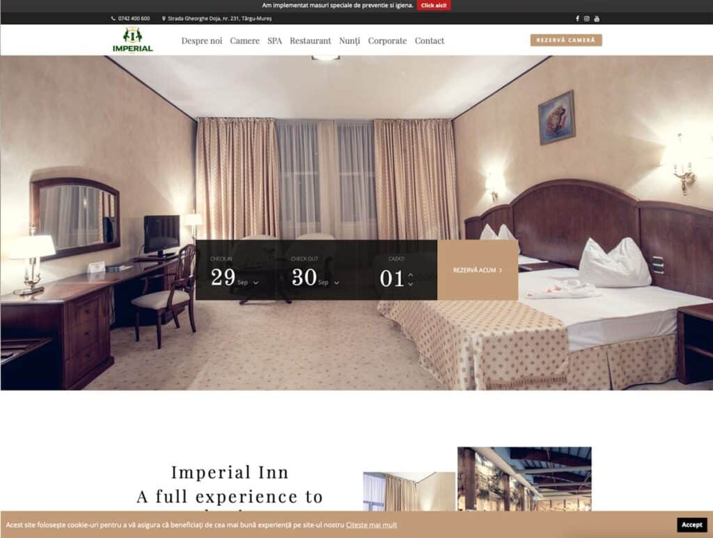 Pornind de la numele nostru „revamp” care descrie perfect ceea ce facem noi și anume „give new and improved form, structure, or appearance to” (știm, știm însă sună mai bine în engleză :) ) am realizat un nou website pentru prietenii noștri de la Imperial Inn, am inbunătățil aspectul dar mai ales funcționalitatea și ușurința de a naviga și găsi informația cât mai rapid. Noul design se bazează pe o paletă de culori subtile și un aspect minimalist care reflectă atmosfera de lux a hotelului.