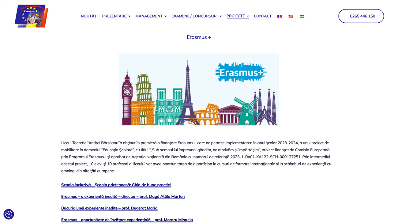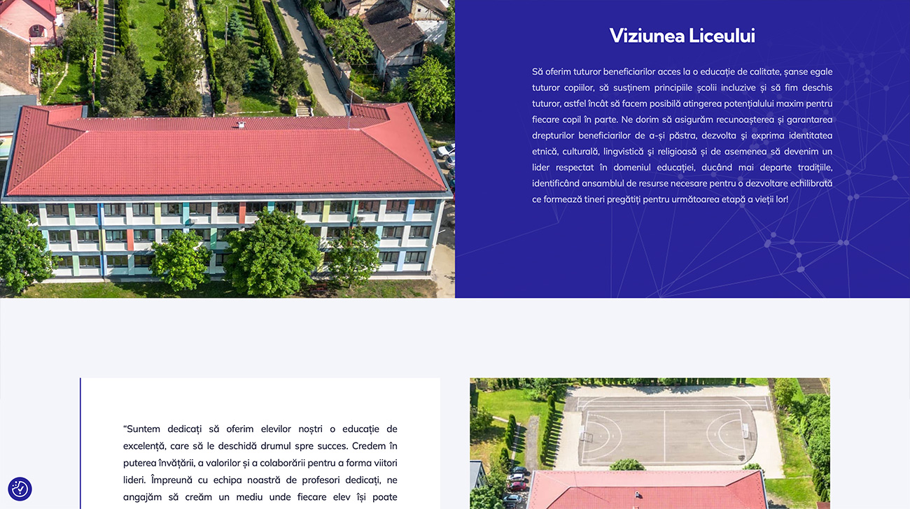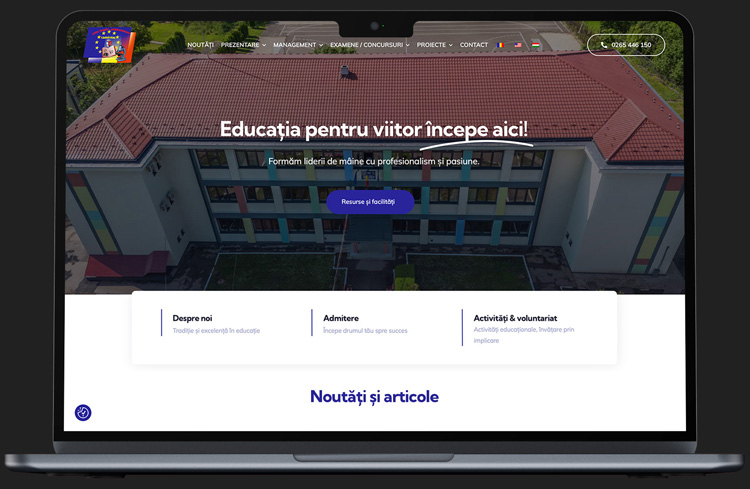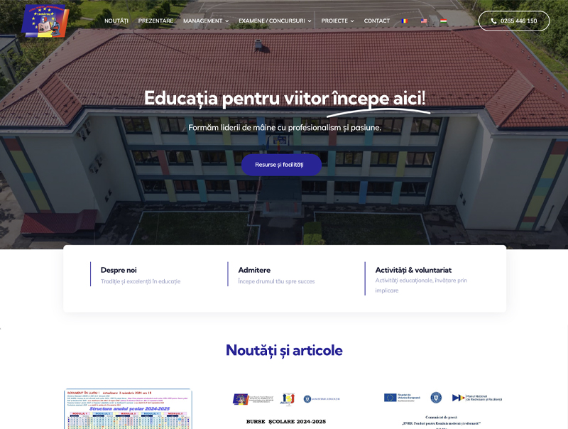Site-ul anterior al liceului era foarte vechi, static, fără responsivitate și dezorganizare structurală, o platformă total nepotrivită pentru elevii, generație obișnuită cu mobilul. Noi am lansat un website modern, dinamic și complet optimizat pentru mobil și desktop, care le oferă elevilor o navigare rapidă și atractivă. În plus, am înlocuit vechile galerii foto cu tururi virtuale interactive pentru clădiri și facilități, reflectând viețuirea activă și spiritul inovator al școlii.