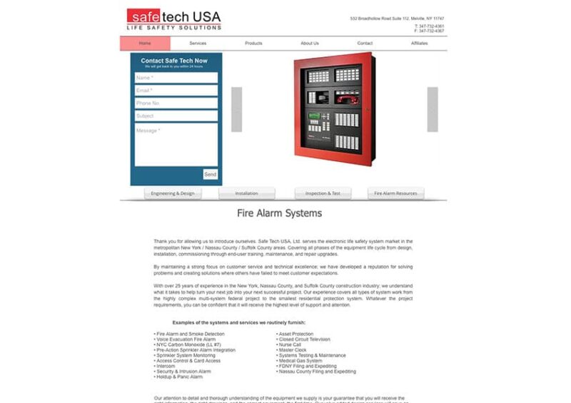 Am realizat redesignul complet al website-ului SafeTech USA, creând un concept nou și modern care reflectă angajamentul lor pentru inovație. Am restructurat informațiile pentru o navigare clară și intuitivă, am implementat un design complet responsive pentru orice dispozitiv și am optimizat interfața conform celor mai bune practici UX/UI. Rezultatul este un site elegant, ușor de utilizat și adaptat nevoilor vizitatorilor, consolidând poziția SafeTech ca lider în domeniul sistemelor de alarmare la incendiu.